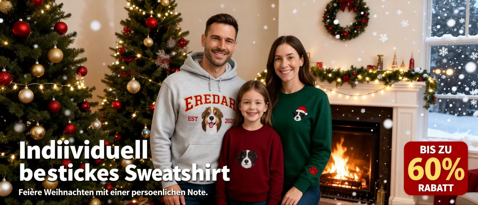 Personalisiertes, mit Haustieren besticktes Sweatshirt in der Mitte