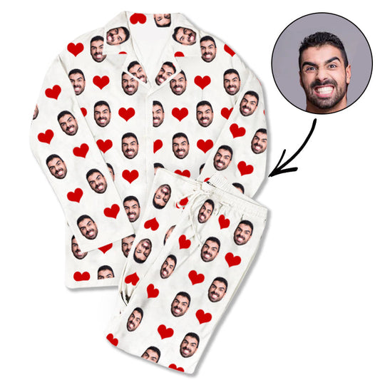 Benutzerdefinierte Foto-Pyjama-Hosen für Männer Herz das Gesicht meiner geliebten Person Langarm