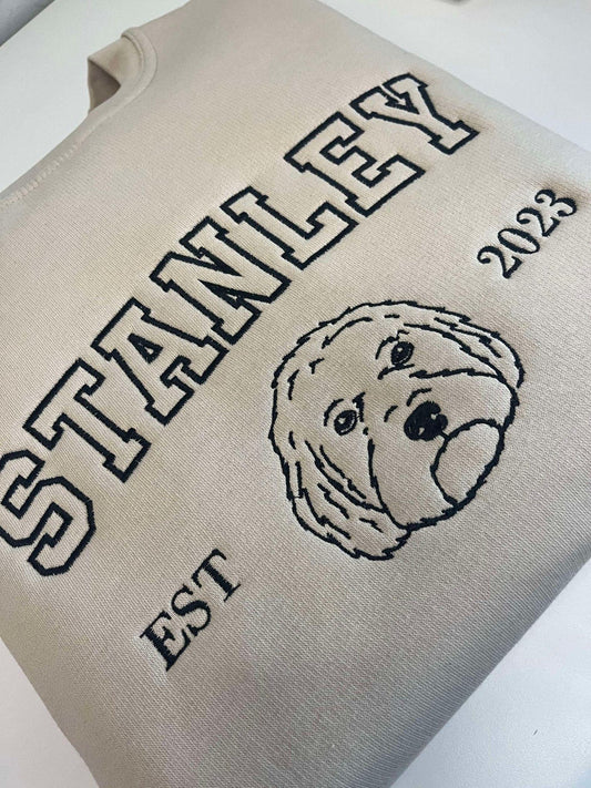 Personalisierter bestickter Hoodie oder College-Sweatshirt mit Haustierporträt – Hundemotiv nach Foto gefertigt