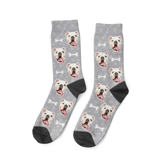 Ein Knochen für Hundesocken mit individuellem Hundegesicht
