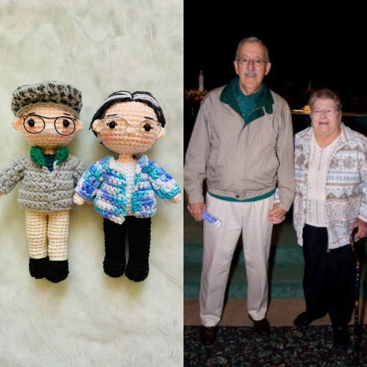 Paarportrait Puppe, personalisierte Paarpuppe, Look-alike Puppe, süße Puppe, Jubiläumsgeschenk, personalisiertes handgemachtes Häkelgeschenk für Mama und Papa