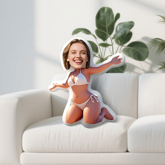 Personalisierbares 3D-Bikini-Mädchen-Foto Kissen, personalisiertes Gesichtskissen, einzigartiges Geschenk für Ihre Lieben, Jubiläums- und Urlaubsgeschenk, Strickstoff Polypropylen, Mischfarbe