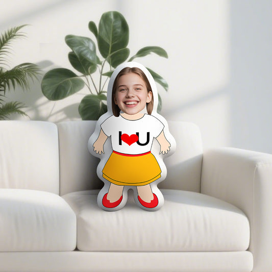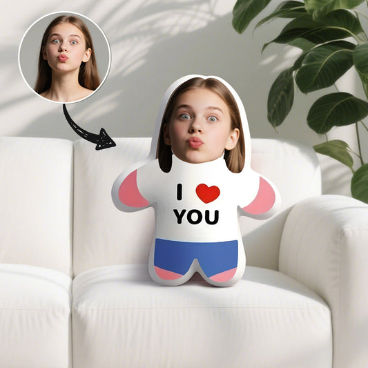 I LOVE U Kissen Benutzerdefiniertes Gesichtskissen Personalisiertes Fotokissen Weibliche Zaubererpuppe Benutzerdefiniertes MinIMe-Kissen Frau