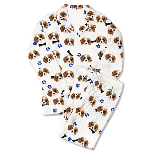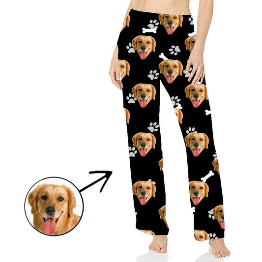 Benutzerdefinierte Foto-Pyjama-Hosen für Frauen Langärmliger Hundepfoten-Fußabdruck