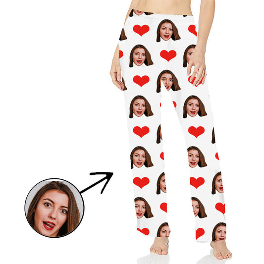 Benutzerdefinierte Foto-Pyjama-Hosen für Frauen Herz Ich liebe meine Frau Langarm