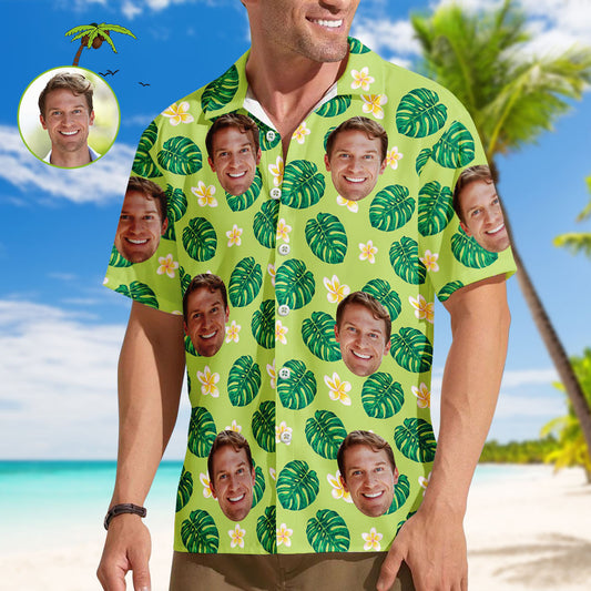 Custom Face Shirt Herren-Hawaii-Hemd mit Blattmuster für Freund oder Ehemann