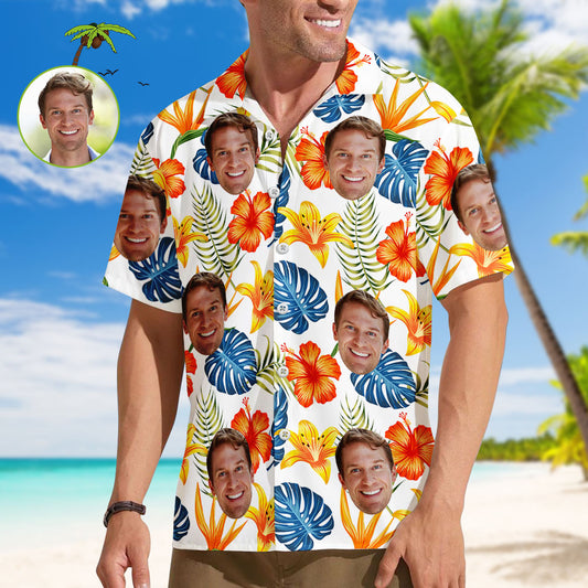 Benutzerdefinierte Hawaiian Shirt für Männer Personalisierte Kurzarm Shirt mit Bild Gesicht Foto gedruckt Hawaii Shirt Orange Blume