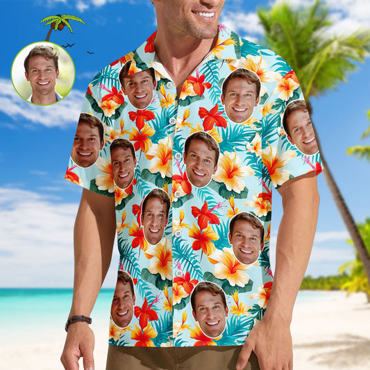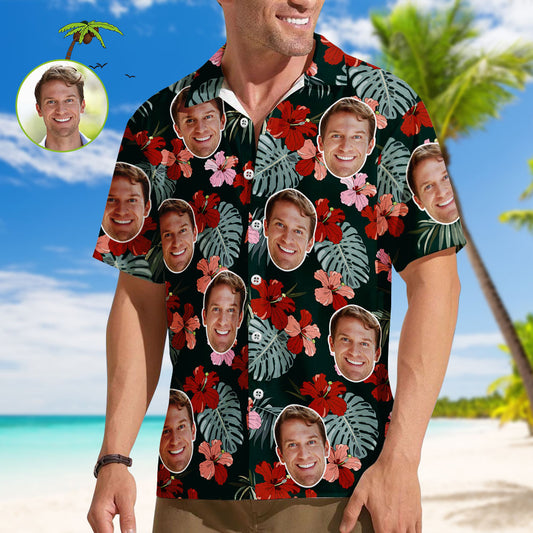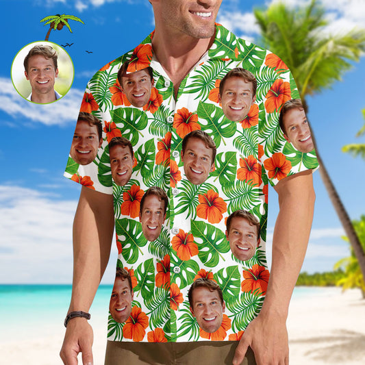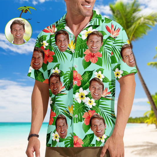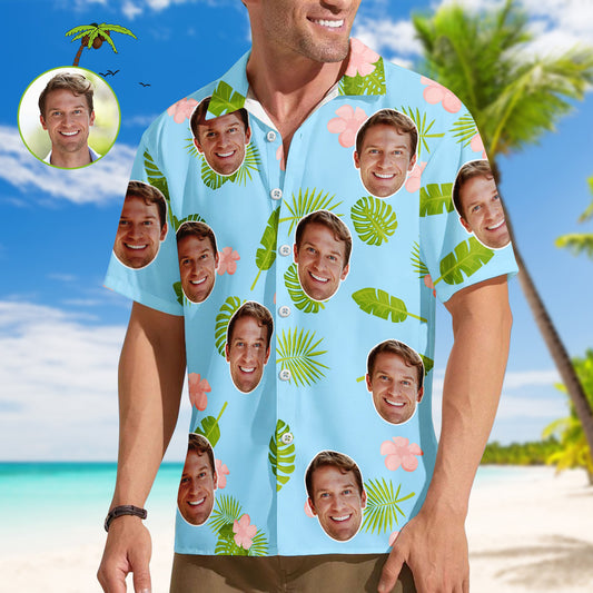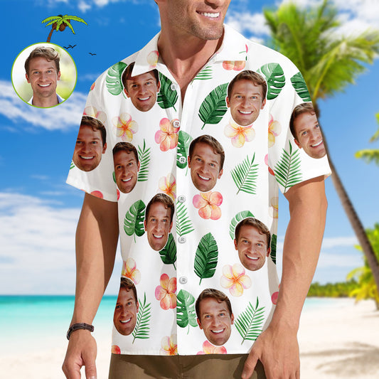 Benutzerdefinierte Gesicht Männer Hawaiihemden Personalisierte Blumen und Blatt