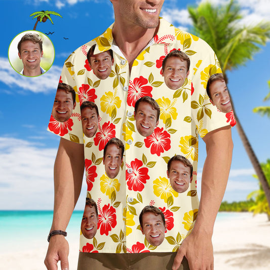 Benutzerdefinierte Gesicht Männer Hawaiian Shirts Personalisierte Nette blumen