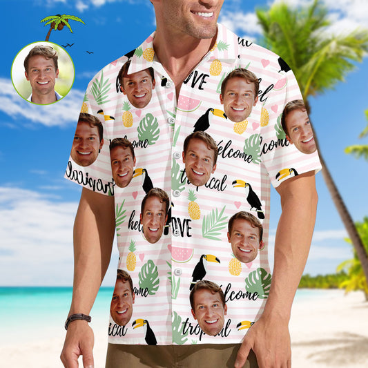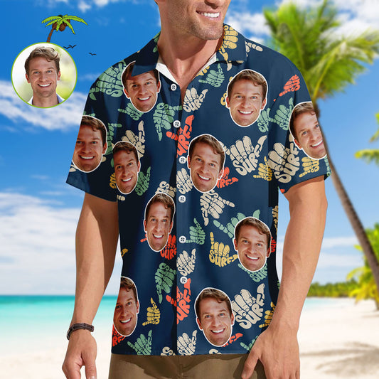 Benutzerdefinierte Gesicht Hawaiian Shirt Herren Vibe Vocation Hawaiian Shirt Bunte Palmen