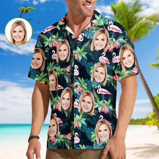 Benutzerdefinierte lustige Gesicht Blätter Hawaiian Shirt Flamingo Hawaiian Shirt für Männer