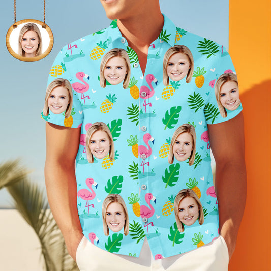 Custom Face Shirt Herren Hawaiihemd Ananas Flamingo
