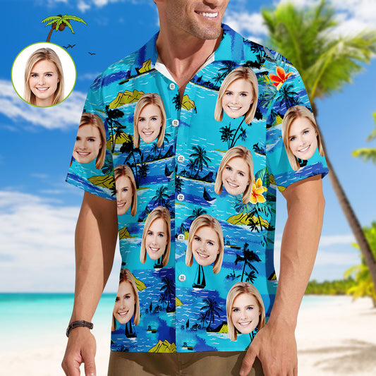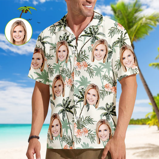 Personalisiertes Hawaii-Hemd mit individuellem Gesicht und durchgehendem Kokosnussbaum-Aufdruck