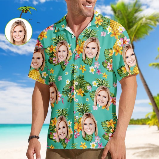 Benutzerdefiniertes Gesicht All Over Print Hawaiihemd Ananas-Hemden Geschenk für Ihn