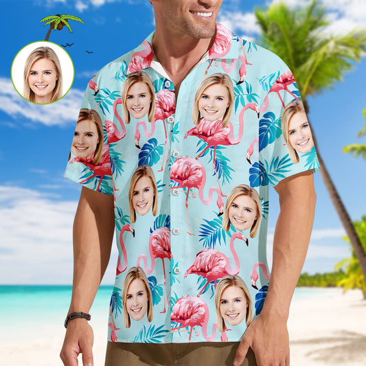 Benutzerdefiniertes Gesicht-Hawaii-Hemd für Ihn, personalisiertes Herren-Foto-Hemd, Flamingo-Hemd