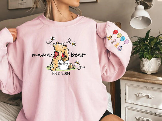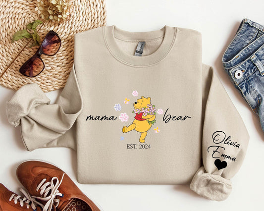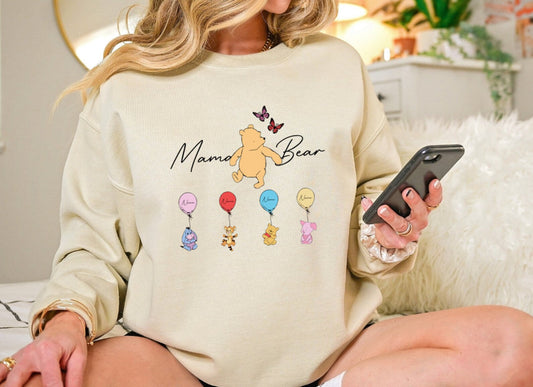 Mama Bear Sweatshirt mit Kindernamen - Klassisches Pooh-Bär-Design