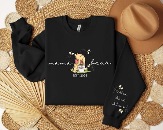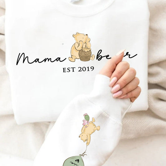 Mama Bear Sweatshirt mit Ärmelnamen - Klassisches Pooh-Bär-Design