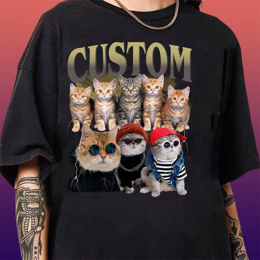 Haustier Custom Vintage Washed Shirt, Custom Cat Graphic Unisex T-Shirt, Hund personalisiert Bootleg Retro 90er T-Shirt Geschenk für Sie, Haustierliebhaber Shirts