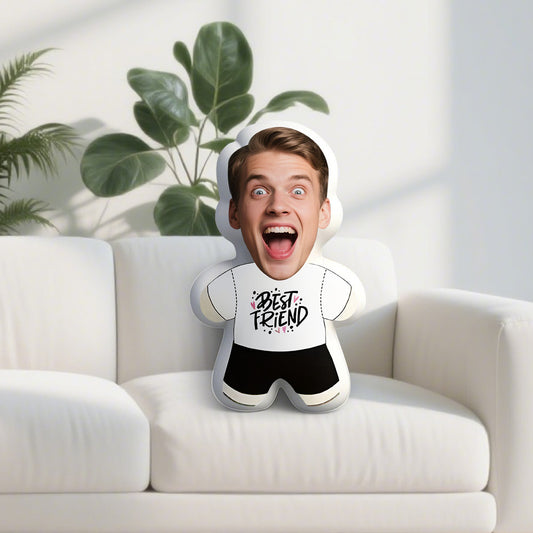 Fotokissen – Personalisierte "Best Boyfriend" Mini-Plüschpuppe, Personalisierte Fotopuppe, Digitaldruck, Stricktuch, Polyester, Weiß und Rot, Perfektes Geschenk