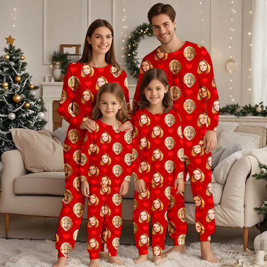Gesichts-Pyjama, Familien-Pyjama-Set, Weihnachts-Familien-Pyjama, Pärchen-Pyjama-Set, individueller Pyjama mit Foto