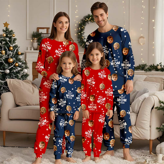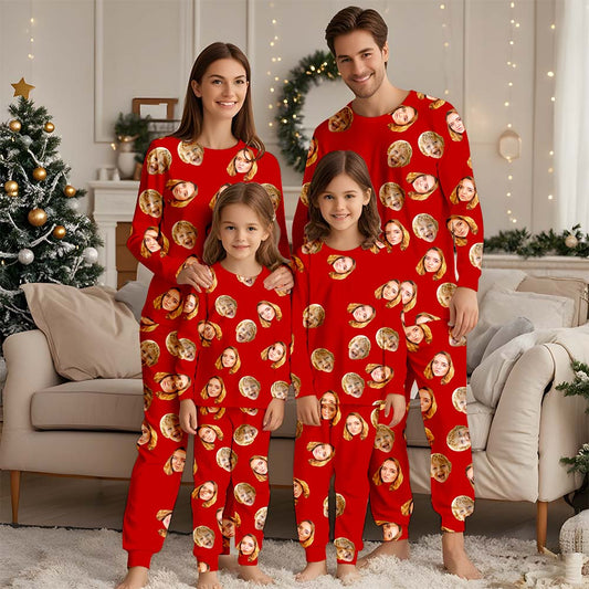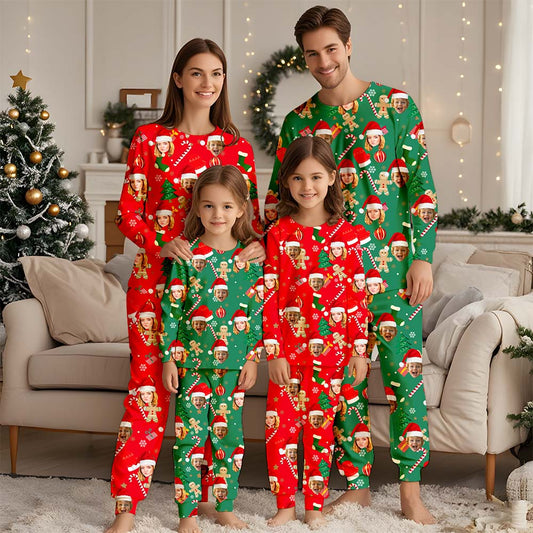 Benutzerdefiniertes Gesichts-Weihnachtspyjama-Set, individuelles Foto-Pyjama-Homewear-Set, bestes Geschenk für Ehefrau, Ehemann, Familie und Freunde
