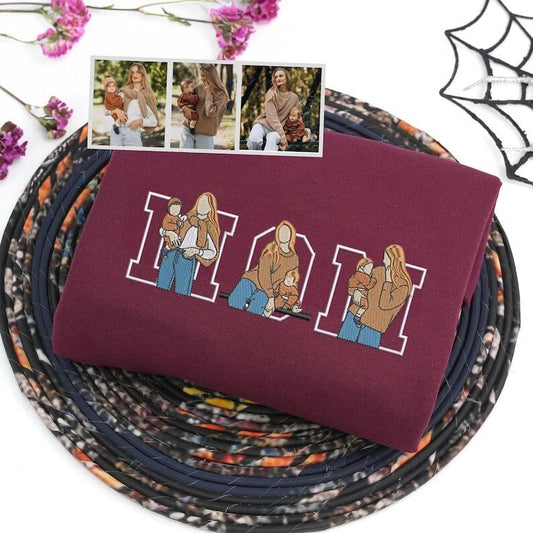 Benutzerdefiniertes besticktes Fotoporträt-Sweatshirt Muttertagsgeschenk