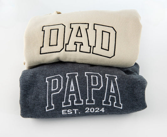 Besticktes Papa Est Sweatshirt, Bestickte Geschenke für den Vater, Geschenk-T-Shirt für neuen Papa, Besticktes Opa Sweatshirt