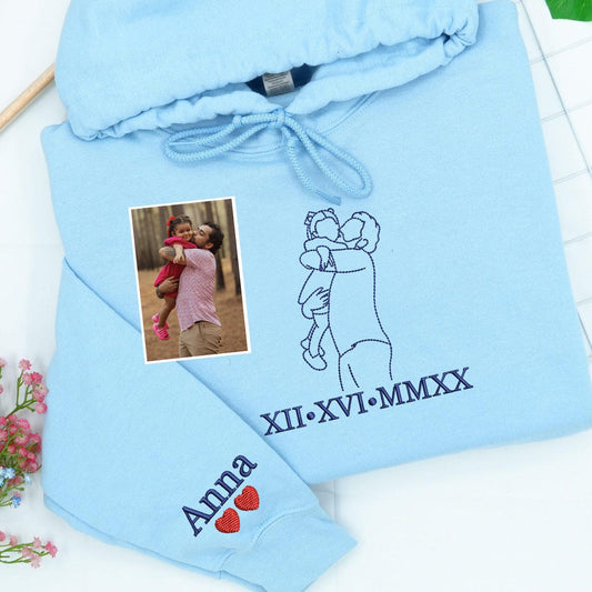 Besticktes Sweatshirt mit Bild von Papa und Tochter | Maßgeschneiderte Sweatshirts für Papa | Personalisiertes Papa-Portrait-Kapuzenshirt | Geschenke zum Vatertag für Papa