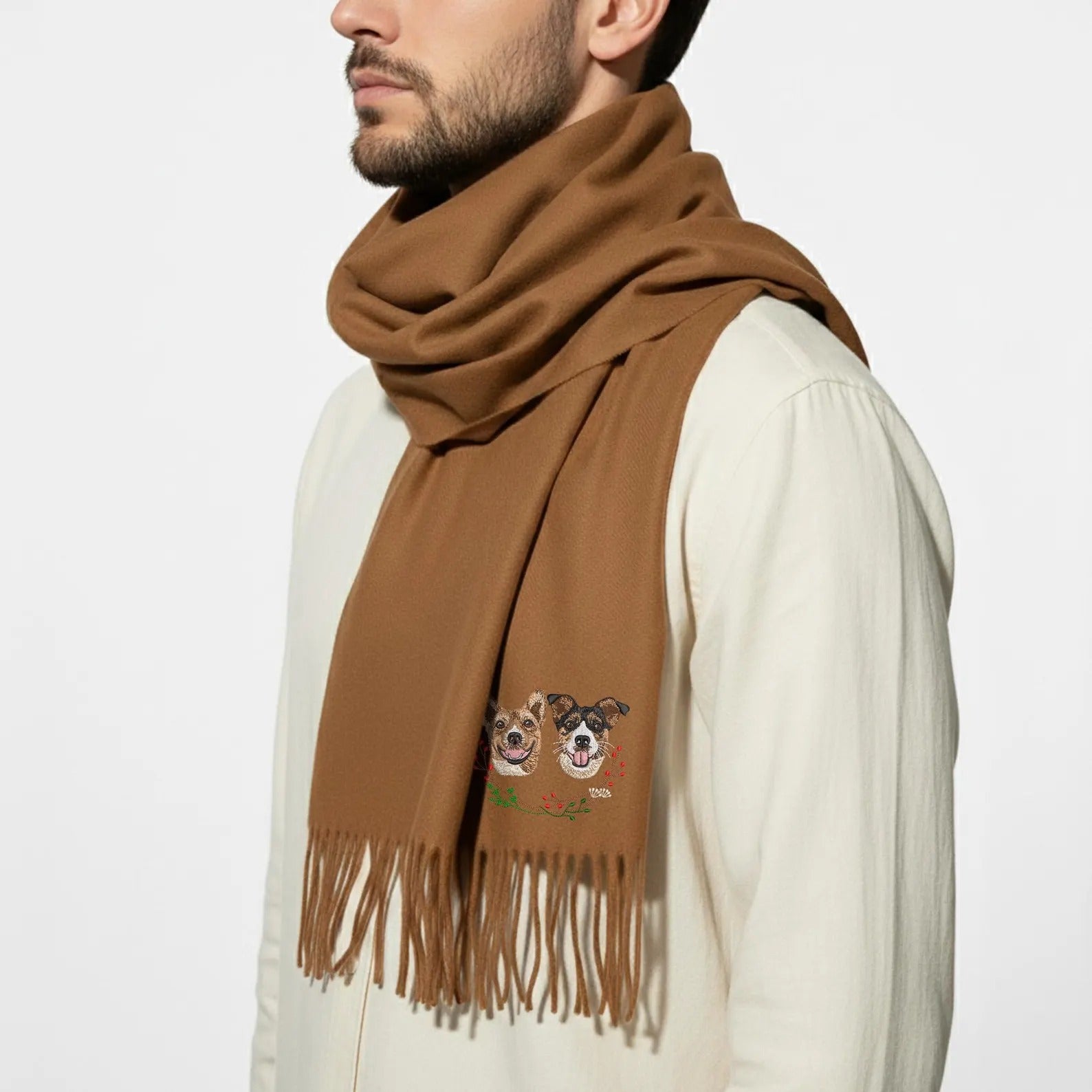 Trage die Liebe zu deinem Haustier ganz nah bei dir – mit unserem bestickten Schal mit Haustierporträt.
