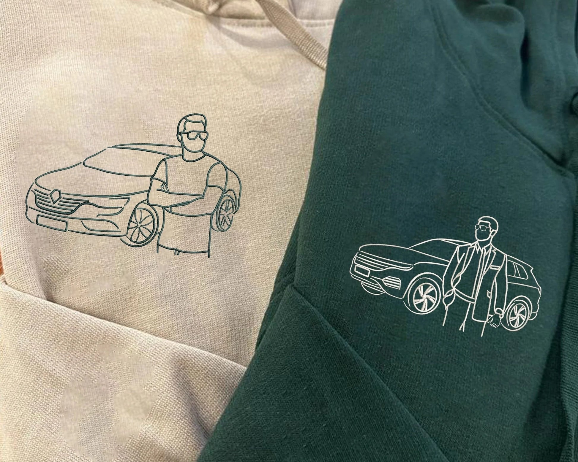 Unsere personalisierten bestickten Auto-Foto-Hoodies sind ideal! Wählen Sie Ihr Lieblingsautofoto aus, das fachmännisch auf das Sweatshirt gestickt werden soll. Bewahren Sie wertvolle Erinnerungen für immer mit Stil auf. Das wird der Favorit eines jeden Autoliebhabers sein.