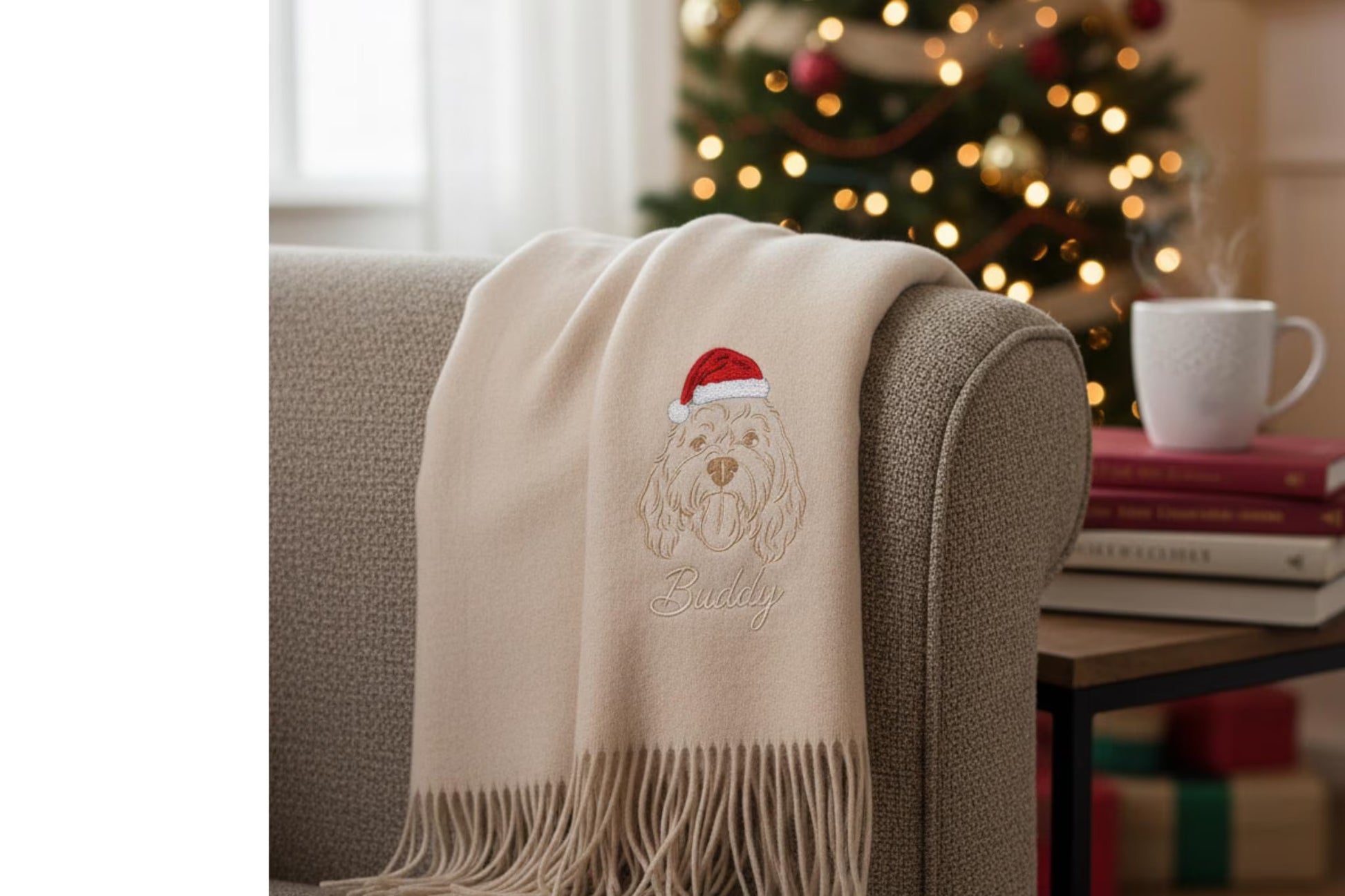 Personalisierter Schal mit Hund oder Katze – Einzigartiges Geschenk mit Stickerei