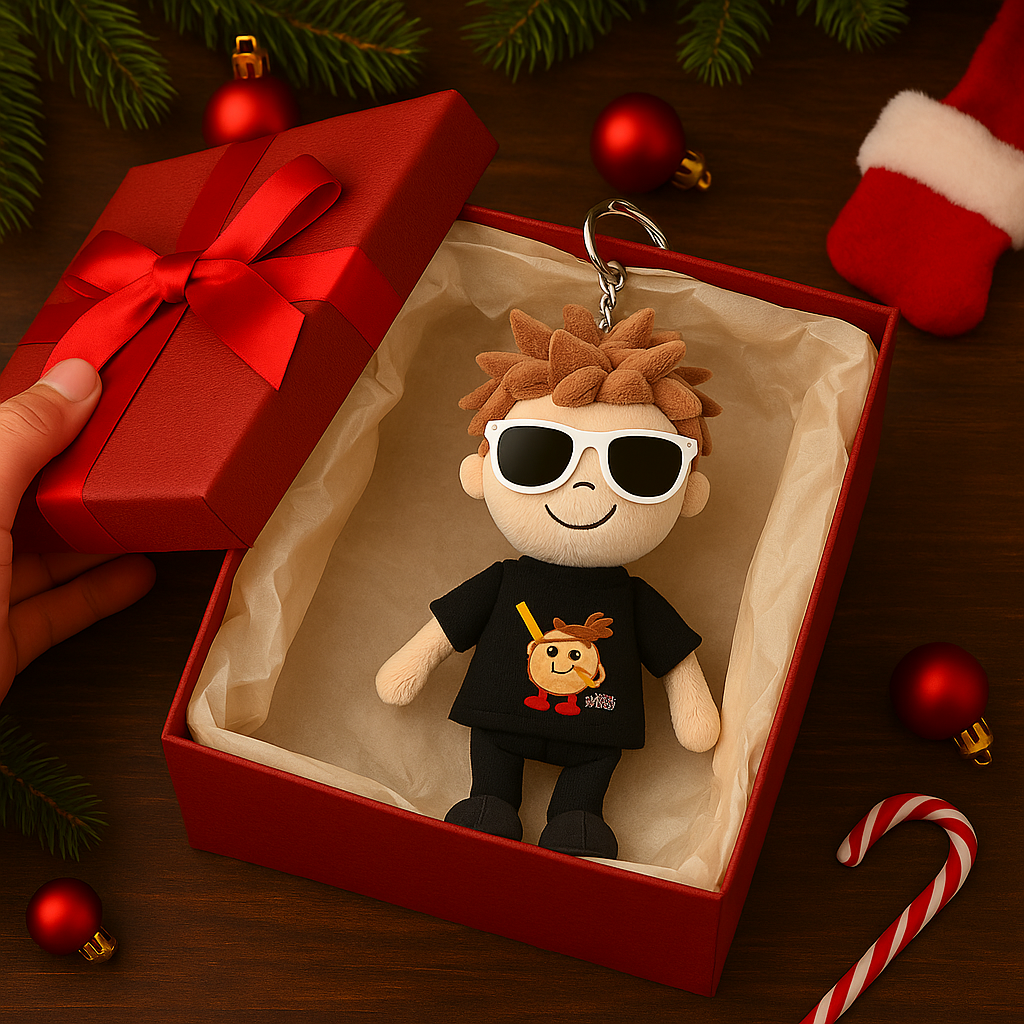Personalisierter Schlüsselanhänger mit Foto einer Stofftierpuppe