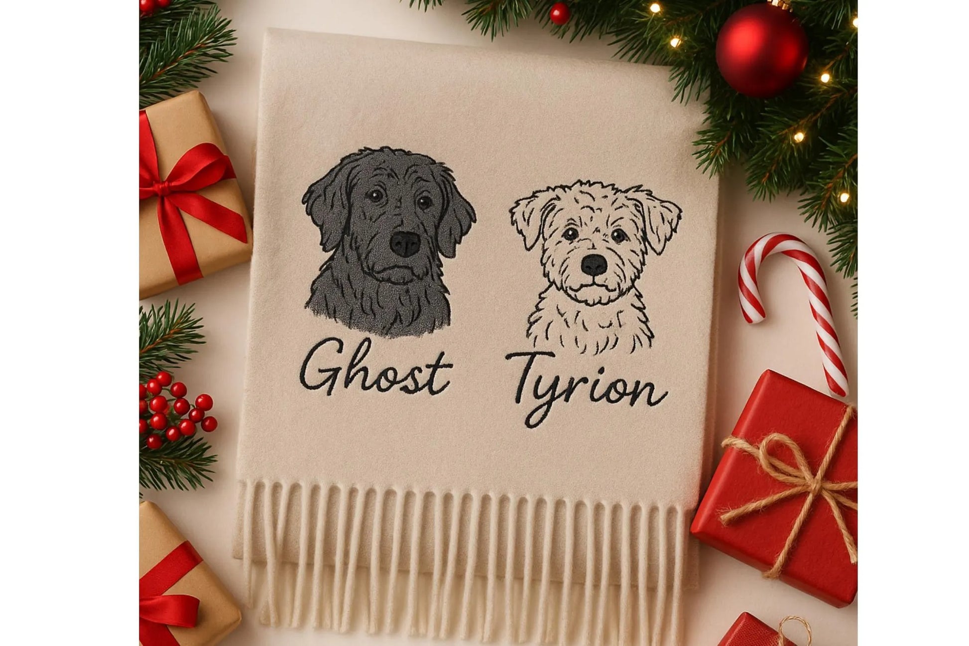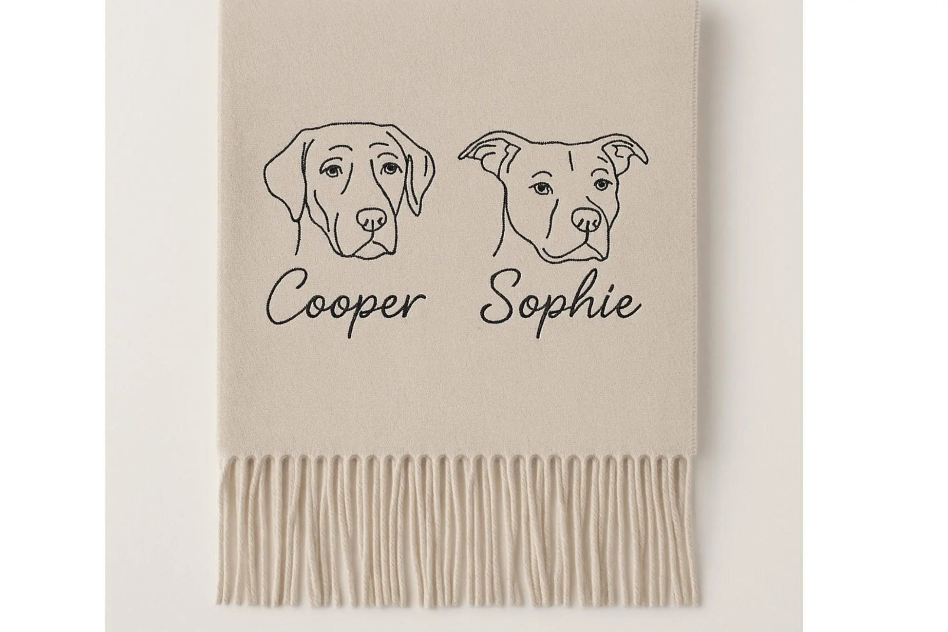 Personalisierter Wollschal mit Haustierporträt: Individuell bestickter Hund oder Katze